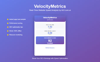 VelocityMetrics - это бесплатное расширение для Chrome, предназначенное для специалистов по SEO и веб-разработчиков, предоставляющее глубокий анализ скорости веб-сайтов и показатели производительности. Этот инструмент позволяет пользователям измерять основные метрики, такие как время загрузки страниц, скорость загрузки контента DOM и время первой отрисовки непосредственно из их браузера. Он использует нативный API производительности браузера, позволяя отслеживать производительность в реальном времени без необходимости в сторонних сервисах.